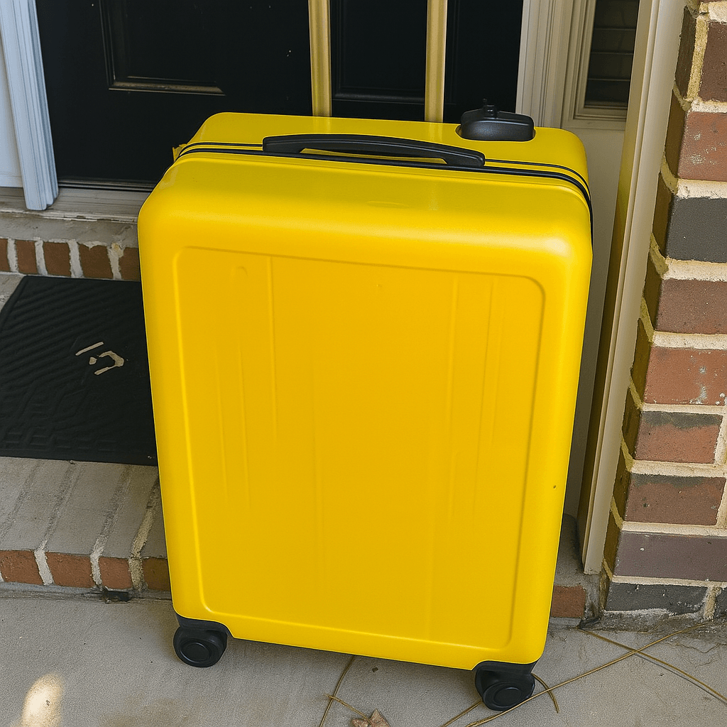JE SUIS RENTRÉE CHEZ MOI ET J’AI TROUVÉ UNE ÉNORME VALISE JAUNE DEVANT MA PORTE AVEC UN MOT — EN L’OUVRANT, J’AI BLÊMI