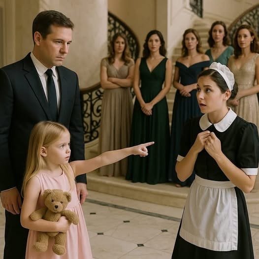 Le luxueux salon plongea dans le silence lorsque Clara, âgée de seulement six ans, vêtue d’une délicate robe rose, tendit le doigt vers Ana, l’employée de maison. Serrant fort son ours en peluche, elle parla avec détermination :